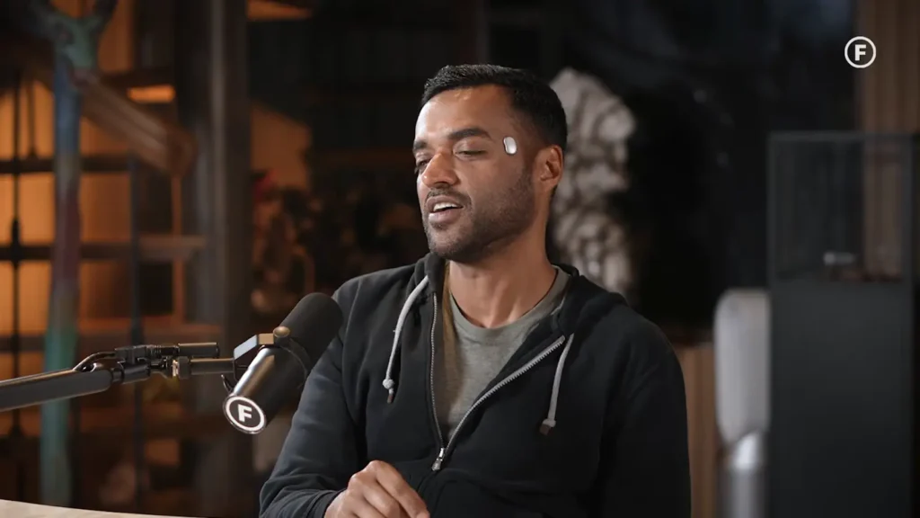 Seeing a business leader casually wear a device near his temple on a popular podcast was unexpected. Within minutes online reaction started — from people joking about how it looked to comparing it with small gadgets or sci-fi devices.