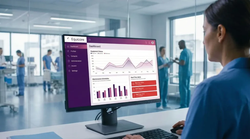 A: Equicare is used to manage, track, and maintain medical equipment across hospitals, departments, and service locations in a centralized digital system.